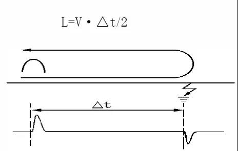 圖1中,波形上發(fā)射脈沖與反射脈沖的時(shí)間差△t,對(duì)應(yīng)脈沖在測(cè)量點(diǎn)與阻抗不匹配點(diǎn)往返一次的時(shí)間,已知脈沖在電纜中的波速度V,則阻抗不匹配點(diǎn)距離,可由下式計(jì)算。